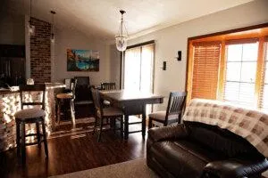 The lodges come equipped with a kitchen, living room, comfortable beds, a true hunting lodge atmosphere and parking.